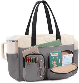 LOVEVOOK Teacher Tote Bag for Women, Multi-pocket Laptop Bag with Large Cup Holder, Nurse Bags Work Briefcase Computer Purse Handbag for Business Office College Travel