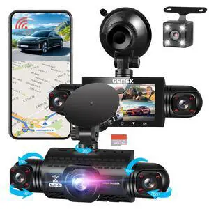 360 Degree View 4 Channel Dash Cam 5G WiFi & App Control, GEMEK 2K Front and Rear Inside, Left and Right Dash Camera for Cars, Free 64GB TF Card, G-Sensor, Night Vision, 24-Hour Parking Mode
