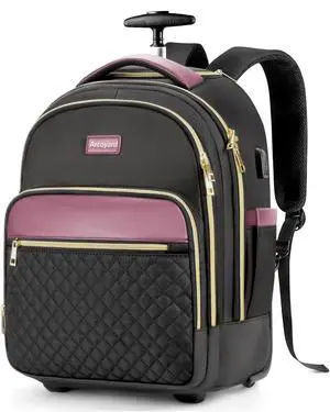 Arcoyard Rolling Backpack for Women with Wheels, roller Laptop Travel Backpack, Lightweight Water Resistant Wheeled Underseat Carry On Luggage for Work and College, Black Purple