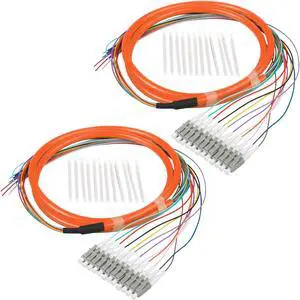 Duogalia 2-Pack LC/OM2 Fiber Optic Pigtail, 1.2m 12 Strand Multimode 50/125 Fiber Pigtail, 12 Color-Coded Fiber Patch Cords for Fusion Splicing