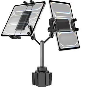 Dosvsi Car Cup Holder Tablet Mount, Heavy Duty Dual Tablet Holder for Truck, [Double Aluminum Arm] Adjustable Cupholder Compatible with iPad Pro 12.9 Mini Air, Galaxy Tab, Z fold, iPhone,4-13" Device