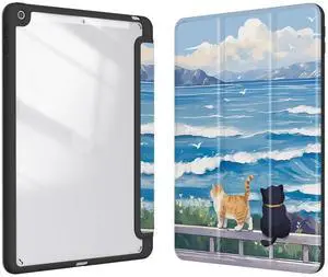 Xkladz Case for iPad 9th / 8th / 7th Generation (2021/2020/2019) 10.2 inch, Case with Pencil Holder, Stand Clear Back Cover Cute Cool Design for Women Girls, Auto Sleep/Wake, Cute Cat