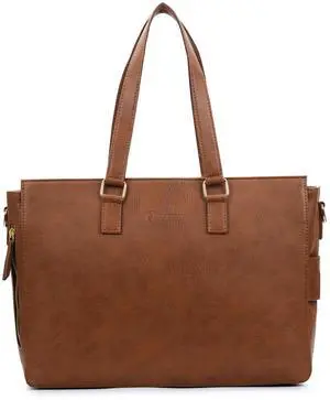 RASHKI TERO - 15.6 Inch Laptop Tote Bag for Women ^^ Vegan Leather Work & Travel Handbag ^^ Spacious, Stylish & Durable ^^ Detachable Laptop Sleeve ^^ Professional Office Bag (Tan)