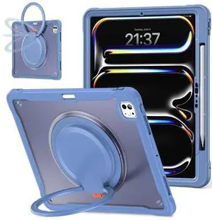 Batianda Case for iPad Air 13-inch 2025 M3 2024 M2 Chip Multilayered Rugged Durable Shockproof Tablet Cover with 360° Rotating Hand Strap Foldable Hidden Stand, Navy Blue