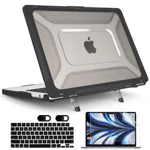 MEEgoodo for MacBook Air 13.6 inch Case 2025 2024 2022 (A3240/A3113/A2681) with M4/M3 M2, Laptop Hard Shell for MacBook Air 13", Cover with Heavy Duty Rugged Shockproof Kickstand, Black
