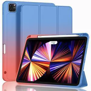 ZryXal New iPad Pro 11 Inch Case 2022/2021 with Pencil Holder, Smart Case [Touch ID & Auto Wake/Sleep] & Pencil Charging (Blue/Orange)