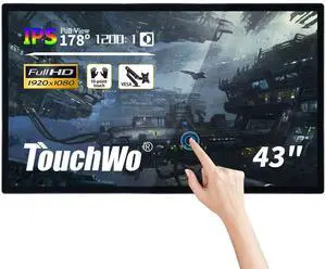 TouchWo 43 inch Capacitive Multi-Touch Screen Industrial Monitor, 16:9 Display 1920 x 1080P, Built-in Speakers, USB, VGA, DVI & HD-MI Ports, Digital Signage Displays and Player for Advertising