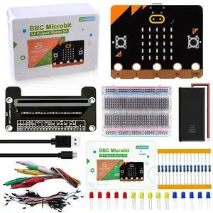 KEYESTUDIO Basic Starter Kit for BBC Micro bit V2, Graphical Programming Built-in Compass, Buttons, LED Matrix Display + Battery Holder & USB Cable for Microbit