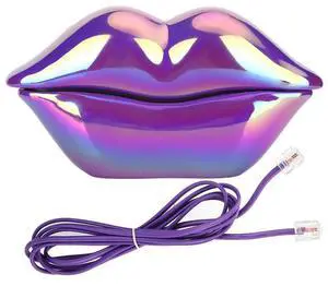 CHENJIEUS Lips Landline Telephone, Purple Lips Telephone Electroplate Desktop Landline Phone, Cute Lip Shape Telephone for Home Office,Lips Phone