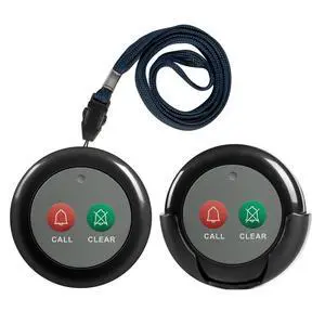 SYNLETT Wireless Call Buttons with Clear Call Dual Function for Wireless Call System Portable Caregiver Pager for Restaurants Nursing Home Clinic Care Facilities 2 PCS Black