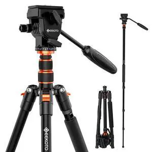 GEEKOTO Video Tripod Fluid Head,Professional Camera Tripod for DSLR,Monopod Aluminum 77" for Video Camcorder Canon Nikon Sony with 1/4" Screws Fluid Drag Pan Head,Load Capacity up to 20 Pounds