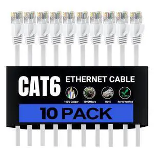 HUGIN Cat 6 Ethernet Cable10ft 10 Pack, Flat High Speed 1000Mbp/s Network Cables with Durable RJ45 Gold-Plated Connectors, Outdoor&Indoor, for Router, Modem, PS4/5 (10 Feet 10pack)