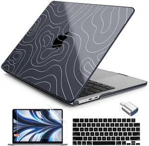 Batianda Case for New MacBook Air 13.6 Inch M5 (2026) & 2025 M4 2024 M3 2022 M2 Release - Ultra Slim 1.2mm Glossy Hard Shell Protective Skin Keyboard Cover 4-in-1 Bundle, Topography