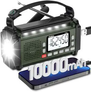 PRUNUS J-924 10000mAh/37000mWh Hand Crank Radio, AAA Batteries Powered Emergency Radio Solar, NOAA Weather Radio AM/FM/SW, USB Charging, Torch& Reading Light, SOS Alarm, Power Bank
