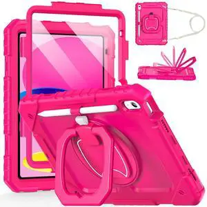 Cantis Case for iPad (A16) 11th/ 10th Generation 11/ 10.9 Inch 2025/ 2022, Shockproof Case for iPad 11 with Screen Protector/ Rotating Stand/ Adjustable Shoulder Strap/ Pen Holder, Hot Pink