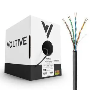Voltive Cat5e Ethernet Cable, Plenum (CMP), Black, 1000ft - 24AWG 4 Pair Solid Bare Copper, UTP, 350MHz, UL Certified & ETL Verified - V-1228-6