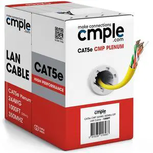 Cmple - Cat5e Plenum Cable 1000ft, CMP, Yellow, 350MHz Gigabit Ethernet Solid Network Internet Bulk UTP