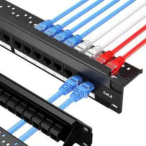 iwillink 10Gbps Patch Panel 12 Port, 10-Inch Through Coupler RJ45 Cat6 Patch Panel with Back Bar, Wallmount or Rackmount, Compatible with Cat5, Cat5e, Cat6 Cabling