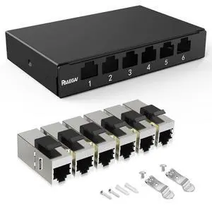 PBAEGAV Patch Panel 6 Port 0.5U with Inline Cat7 Keystone JackEC Listed 10G Support STP 10 Inch for Cat6A,Cat6,Cat5e (with Cat7 Kestone Jack Shielded)