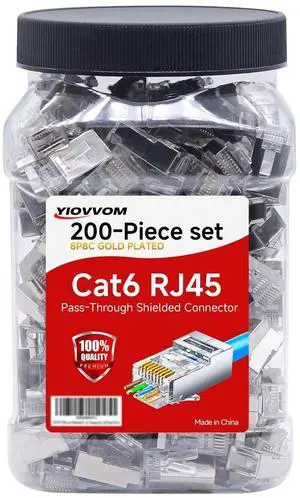YIOVVOM Cat 6 Shielded Pass Through RJ45 8P8C Connectors (Cat6 Connector / RJ45 Modular Plugs/Cat 6 Ends/Ethernet Plugs) UTP Network Connector for Solid Wire and Standard Cable, Transparent, 200 Pack