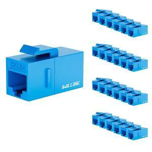 iwillink RJ45 Cat6A Keystone Coupler 25-Pack, Female to Female Cat6a Keystone Jack, UTP Keystone Coupler Insert,Keystone Jack, Ethernet Coupler, Blue