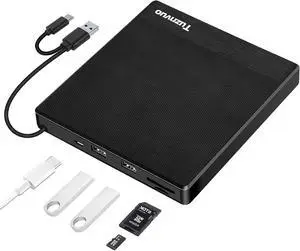 7 in 1 DVD External Blu-ray Drive: USB 3.0 Type-C External Bluray/DVD Drive Burner with SD/TF Port - Support Disc R/W - External Disc Drive Compatible with Windows XP/7/8/10/11 Mac Laptop Desktop