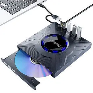 Wbacon 7 in 1 External Blu Ray Drive, External Blueray/DVD Drive for PC with SD/TF Port Blu Ray Burner, Support 100G Disc R/W for PC External Blu Ray Drive for Windows Linux MacOS Laptop Desktop