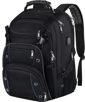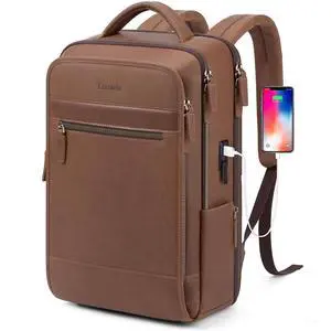 Tzowla Leather Laptop Backpack, Bag for Men and Women,Business Travel Work Rucksack Fits 15.6 Inch Laptop,Bookbag with USB and Type-C Charging Port-Black