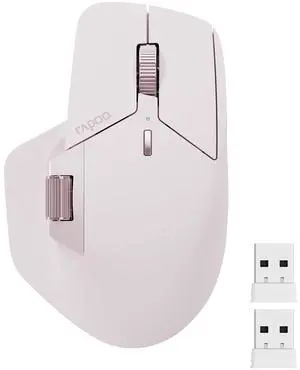 Rapoo MT760 Multi-Device Wireless Mouse, Bluetooth 5.0 and 2.4GHz Multi-Mode Connection, Up to 4 Devices, 11 Programmable Buttons, 4K DPI, Ergonomic Design, 90 Days Battery Life, PC, Pink
