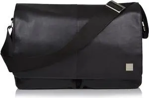 KNOMO Kobe Leather Shoulder Bag 16 inch Laptop Travel Crossbody Shoulder Case, Black Computer Messenger