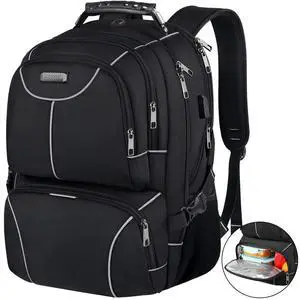 Mactso Canvas Travel Laptop Backpack for Men Women, Business Work Rucksack College School Computer Bag Fits 15.6 Inch Notebook,Bookbag with USB Charging Port (Black, 15.6 Inch)
