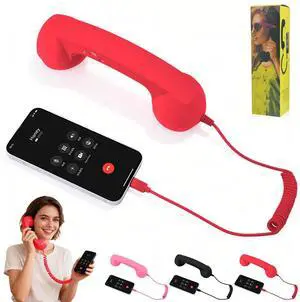 Retro Phone Handset, 2026 New Retro Style Type-C Phone Handset,Vintage Wired Plug in Handheld Cell Phone Receiver with Microphone, Suitable for Cell Mobile Video Conferences,Calls,Meetings (Red)
