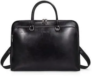 Men's Full Grain Leather Briefcase Large 17 Inch Business Travel Laptop Messenger Bag Tote with YKK Metal Zippers