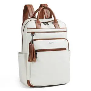 Shrrie Laptop Backpack for Women 15.6 inch Travel Leather Backpack Purse Work Computer Backpacks for Business College Beige