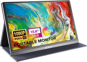 KYY Portable Monitor 15.6inch 1080P FHD USB-C, HDMI Computer Display HDR IPS Gaming Monitor w/Premium Smart Cover & Screen Protector, Speakers, for Laptop PC MAC Phone PS4 Xbox Switch