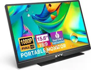KYY Portable Monitor Latest 15.6'' FHD 1080P USB-C HDMI Laptop Monitor w/Smart Cover Bag & Dual Speakers, External HDR Computer Screen, Travel Gaming Monitor for PC MAC Phone Xbox PS4/5 Switch