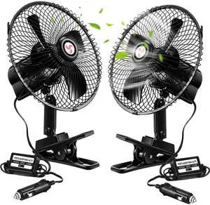 Tujoe 2 Pcs Portable Car Fan with Car Cigarette Lighter Electric Cooling 12 Volt Oscillating Fan 12 Volt Fan Automobile Vehicle 360 Degree Swivel Fan with Clip for Car Truck Supplies, Black (8 Inch)