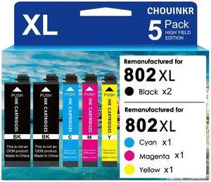 CHOUINKR 802XL Ink Cartridges Latest Upgrade Remanufactured for Epson 802XL Ink Cartridges Combo Pack (T802XL-BCS) Works with Workforce Pro WF-4720, WF-4730, WF-4734, WF-4740 (5er-Pack)