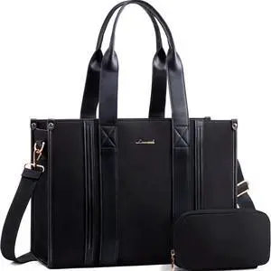 LOVEVOOK laptop bag for women 15.6 inch large Lightweight canvas work tote bags with Clutch Purse water resistant computer bags for laptops for women Business Office Travel college Casual, black