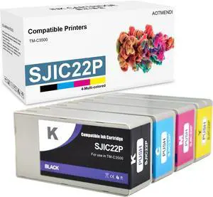 AOTMENDI SJIC22P Ink Cartridge Set Replacement for ColorWorks TM-C3500 TMC3500 C3500 C3510 C3520 Printer (4-Pack, Black/Cyan/Magenta/Yellow)