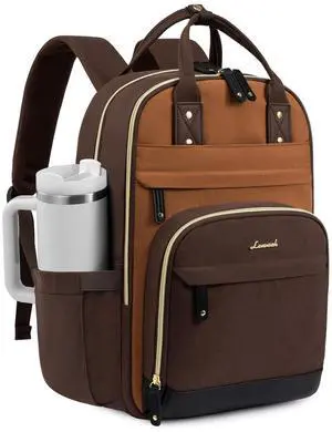 LOVEVOOK Laptop Backpack for Women with Giant Tumbler Holder Pocket,17.3 inch School College Book Bag Nurse Teacher Backpack,Work Travel Backpack Laptop Computer Bag,Brown-Yellowish-brown-Coffee brown