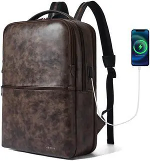 FADEON Laptop Backpack for Women Leather Travel Backpack with Laptop Compartment, Designer Ladies Computer Backpacks Coffee