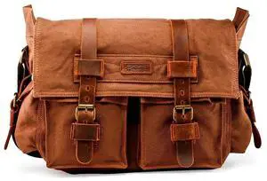 Gearonic TM Vintage Canvas Leather Messenger Bag for 17 Inch Laptop, Coffee