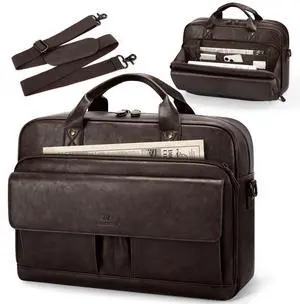 CataPurus Top Grain Leather 14.2" Laptop Tote Bag Briefcase for Man & Woman, Retro Design & Adjustable Strap, Fits to 14.2" MacBook Pro/Air, Messenger Bag Handbag for Office/Travel, Coffee 14.2 Inch
