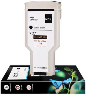 Lucky Bridge 727 300ml 1pcs Matte Black Ink Cartridge C1Q12A Compatible Ink Cartridge Replacement for HP 727 DesignJet T920 T930 T1530 T2500 T1500 T2530 Printers (1 MBK)-US