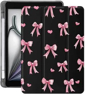 CozyNestCYCute Pink Bow Print Case for 10.9 Inch Ipad Air 4 Kawaii Girly Ribbon Cover for Ipad Auto Sleep/Wake Adjustable Anti-Slip Shockproof Protective Case with Pencil Holder Girl Women