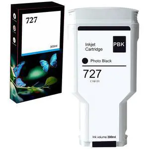 AYMSous Compatible for HP 727 Photo Black 300ML Remanufactured Ink Cartridge Replacement for HP 727 for HP727 for HP 727PBK for HP DesignJet T920 T930 T1500 T1530 T2500 T2530 Printers