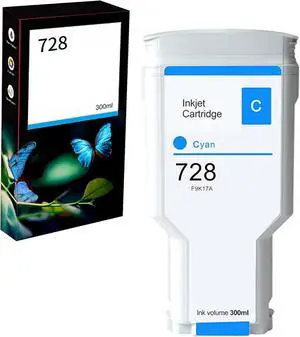 AYMSous Compatible Ink Cartridge Replacement for HP 728 Cyan 300ML F9K17A for HP DesignJet T730 36-in Printer T830 24-in MFP T830 36-in MFP (Cyan 1-Pack)