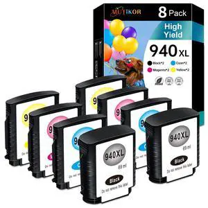 Compatible 940XL Ink Cartridge Replacement for HP 940 940 XL 4906AN 4907AN 4908AN 4909AN Ink Cartridge for Officejet Pro 8000 8500 8500A 8500A Plus Printer (8-Pack 2Black 2Cyan 2Magenta 2Yellow)