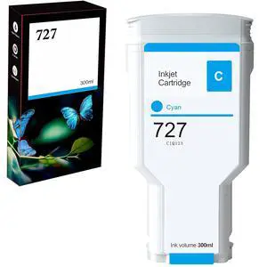 AYMSous Compatible for HP 727 Cyan 300ML Remanufactured Ink Cartridge Replacement for HP 727 for HP727 for HP 727C for HP DesignJet T920 T930 T1500 T1530 T2500 T2530 Printers